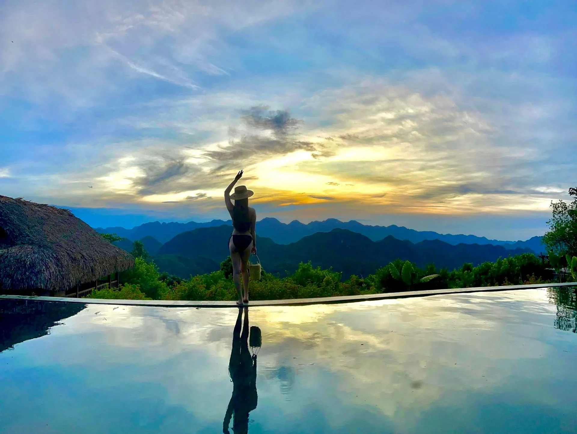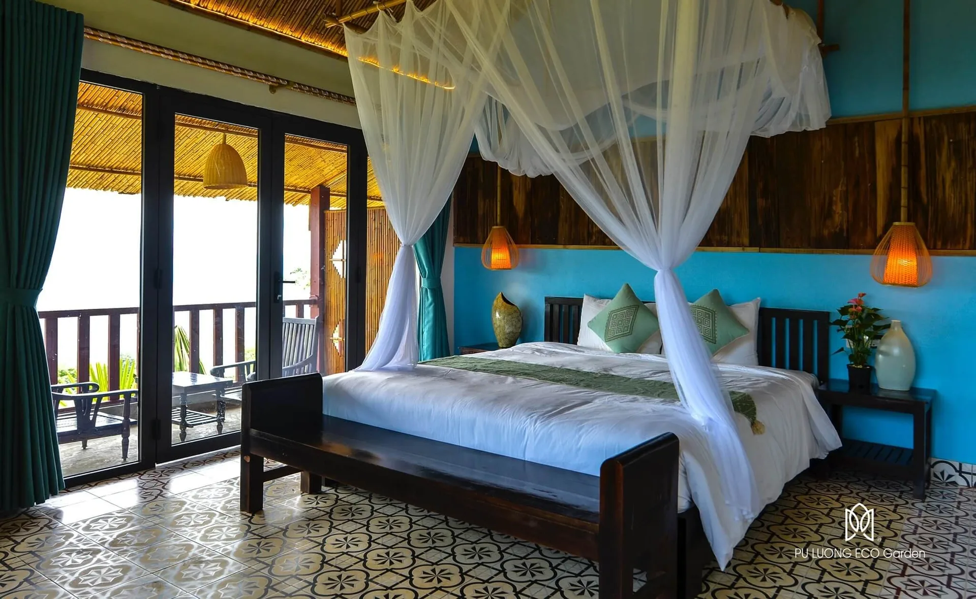 – 𝐂𝐡𝐨̂̃ 𝐨̛̉: Mình book combo phòng + ăn tối +ăn sáng tại Pù Luông Eco Garden, hạng phòng Deluxe view núi. Chỉ 900k/người/đêm.