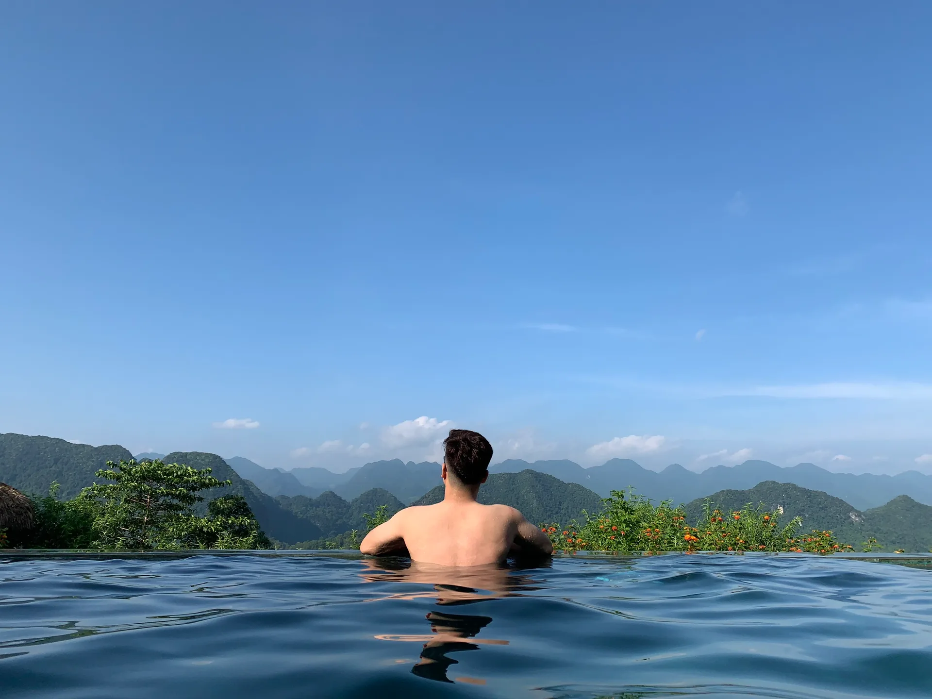 + Sau khi nhận phòng nghỉ ngơi một lúc thì mình hòa mình vào dòng nước tại bể bơi vô cực của resort với chiếc view vô cực đáng đồng tiền bát gạo