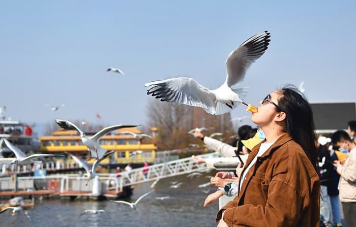 Tháng 10 đến tháng 12: Chim Hải Âu tại hồ Điền Trì, Công viên Thuý Hồ