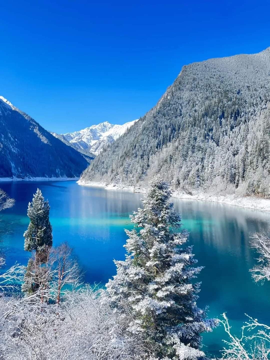 Chụp hình tại Điệp Khê Hải Tử (Hồ Điệp Khê) - nằm ở độ cao 2.258m trên cung đường đến các khu danh thắng Hoàng Long, Cửu Trại Câu. Hồ Điệp Khê được đánh giá là di tích sót lại sau trận động đất 1933 đẹp nhất, được bảo tồn hoàn thiện nhất Trung Quốc đến thời điểm hiện tại.