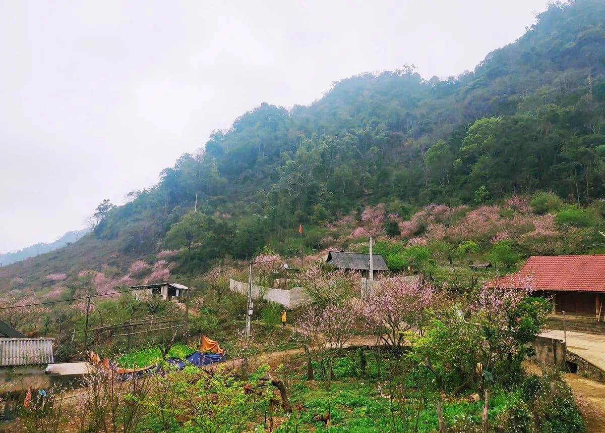 Trên đường đến với Mộc Châu qua bản Lóng Luông quý khách có cơ hội ngắm nhìn những nếp nhà sàn xinh xắn núp dưới những tán đào mơ, mận tạo nên một khung cảnh thơ mộng nơi cao nguyên Mộc Châu.