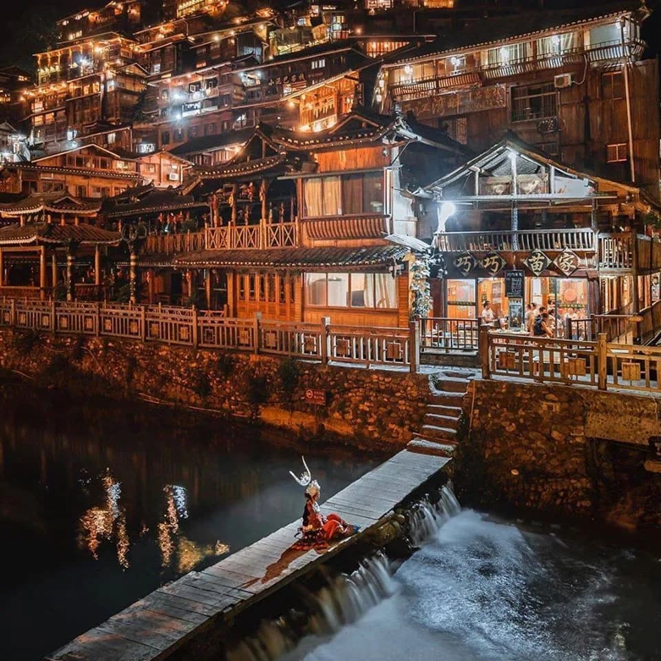 - Sau bữa tối quý khách dạo bộ ở thị trấn. (Một trong những thị trấn văn hóa lịch sử nổi tiếng Trung Quốc, còn được gọi là "Thị trấn cổ Thái Cực", Trấn Viễn cổ trấn có non nước quanh co, phong cảnh mê người, Trấn Viễn là một bức tranh, là một bức tranh thủy mặc "mộc mạc trung kiến quý kỳ, thanh nhã trung hiển thần vận")