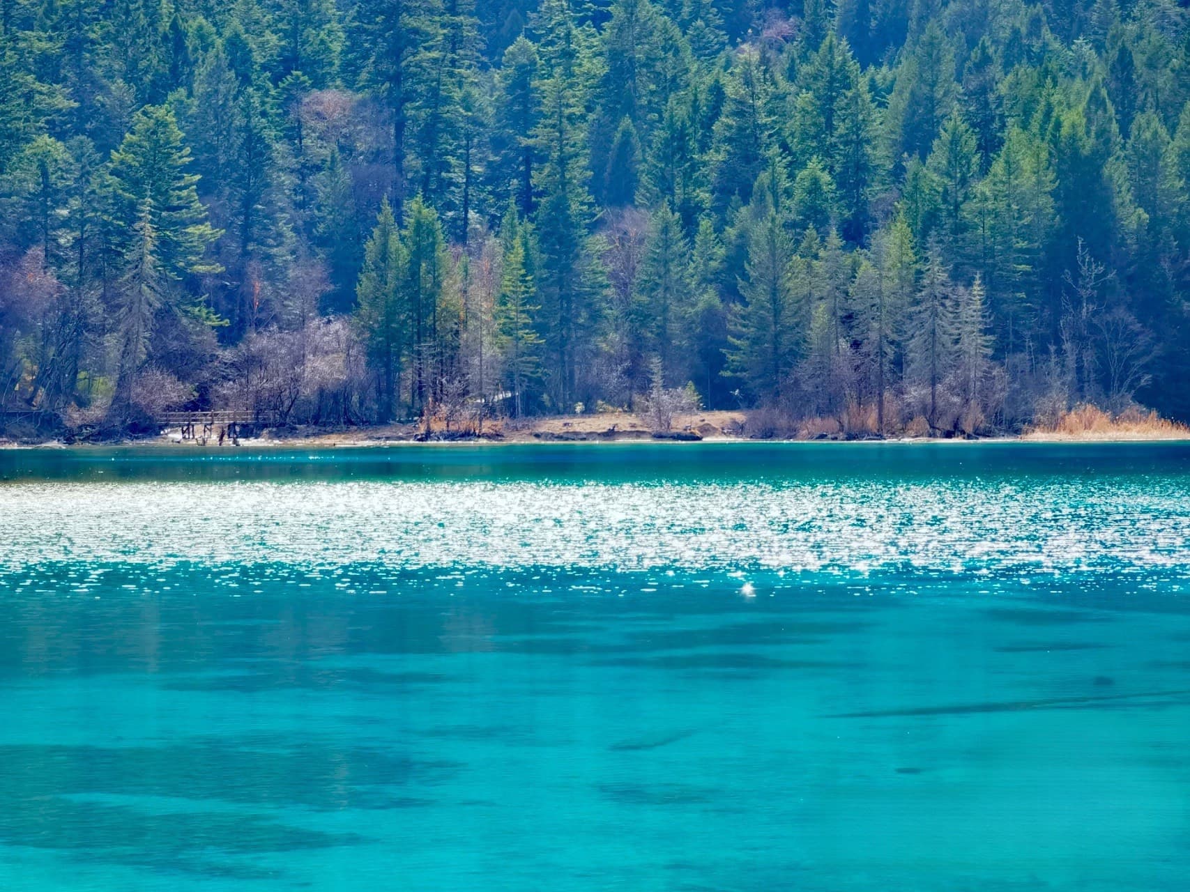 Hồ Ngũ Hoalà một hồ nước nhiều màu cạn, dưới đáy là những thân cây cổ đổ nát